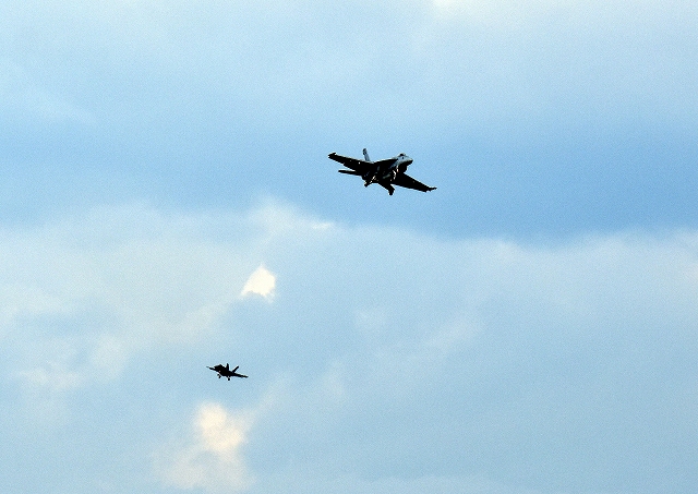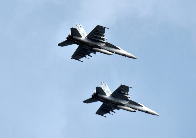 米海軍艦載機 F/A-18E スーパーホーネット 戦闘攻撃機(岩国基地)、NF、312番機、311番機が帰還 |