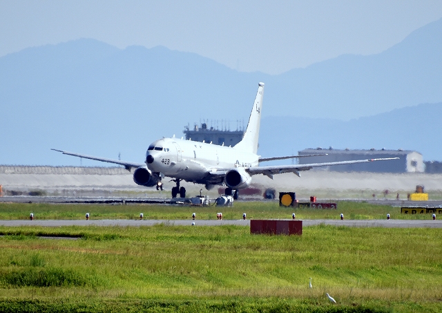 海兵隊 MV-22B オスプレイ(普天間基地)、2機は中の駐機場に。 米海軍 P-8A 対潜哨戒機 ポセイドン(嘉手納基地)、LA、428番機が降りてきます。 |