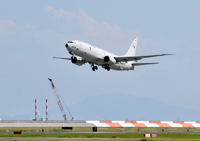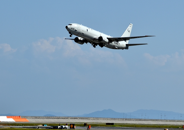 米海軍 P-8A 対潜哨戒機 ポセイドン(嘉手納基地)、LA、428番機が旋回(6周目) |
