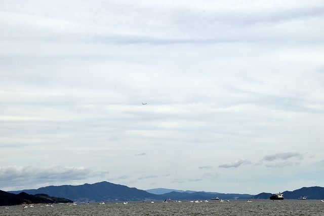 今日も広島方向がよく見えます。釣り船がいっぱい。 |