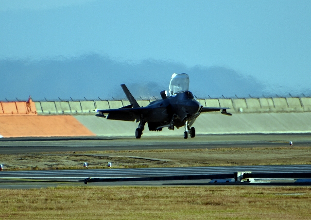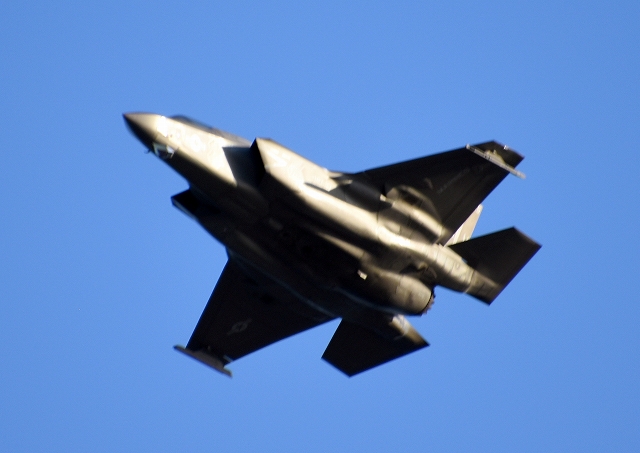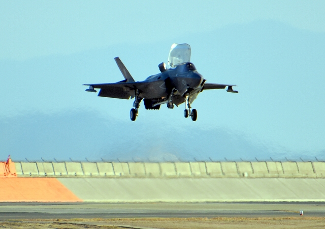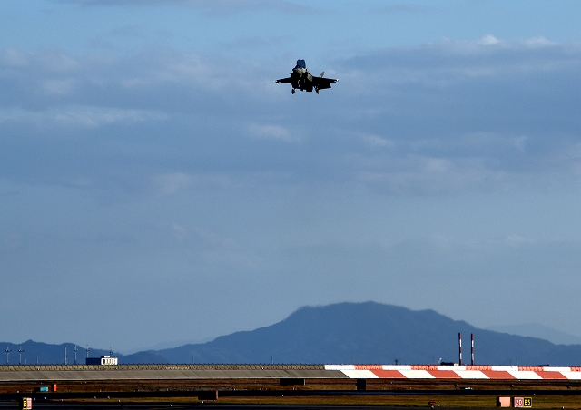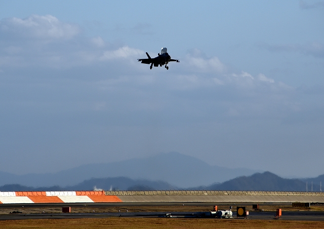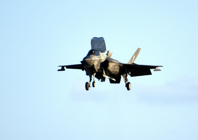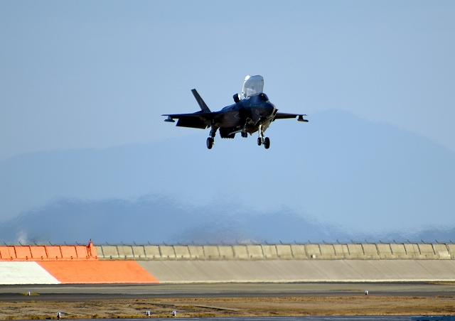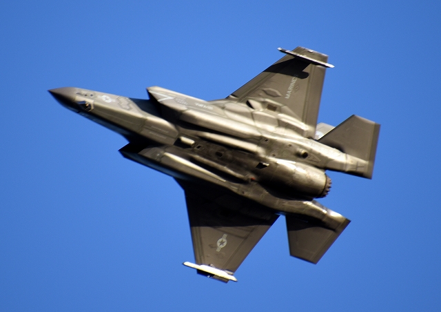 米海兵隊 F-35B ステルス 戦闘機(岩国基地)、VK、15番機が旋回(2周目) |