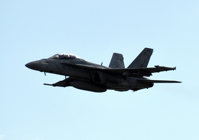 米海軍艦載機 F/A-18F スーパーホーネット 戦闘攻撃機(岩国基地)、NF、103番機が離陸 |