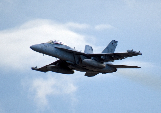 米海軍艦載機 EA-18G グラウラー 電子戦機(岩国基地)、NF、503番機が離陸 |