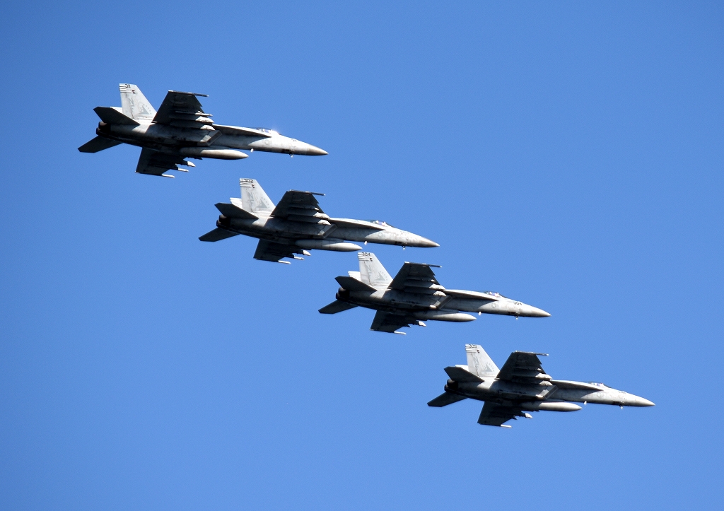 米海軍艦載機 F/A-18E スーパーホーネット 戦闘攻撃機(岩国基地)、NF、305番機、304番機、302番機、311番機が帰還