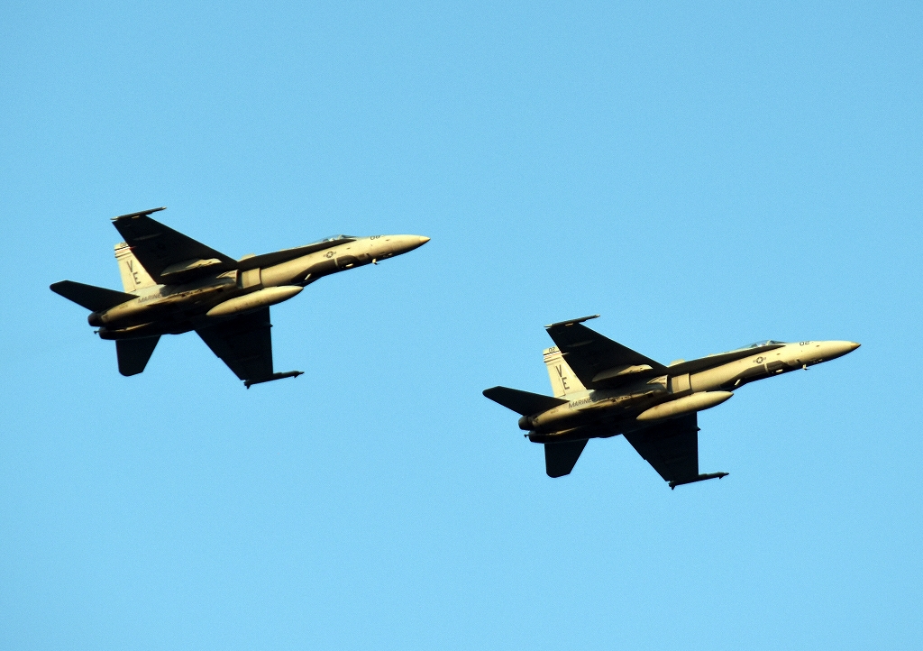 米海兵隊 F/A-18C ホーネット 戦闘攻撃機(岩国基地)、VE、02番機、08番機が帰還