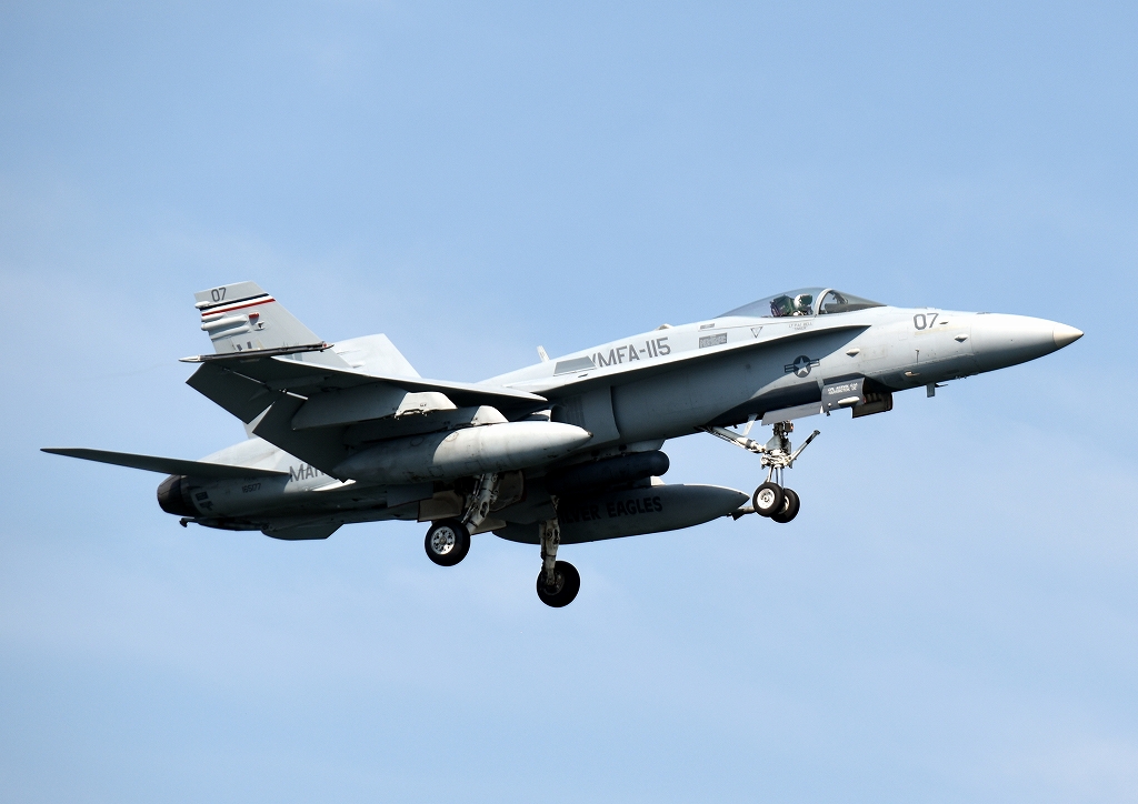 米海兵隊 F/A-18C ホ ーネット 戦闘攻撃機(岩国基地)、VE、07番機が着陸
