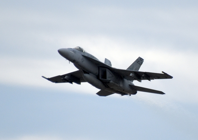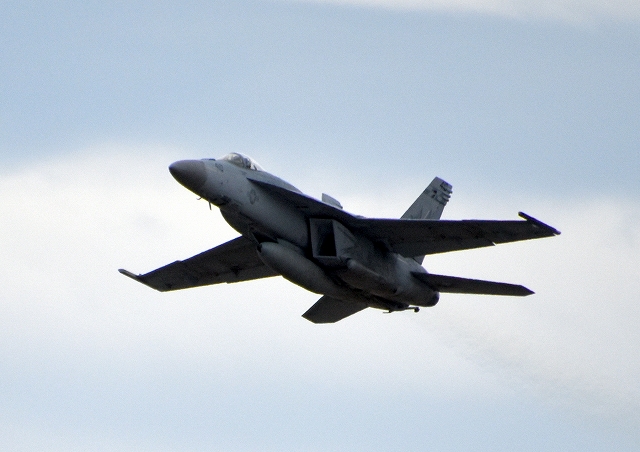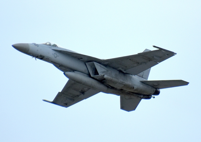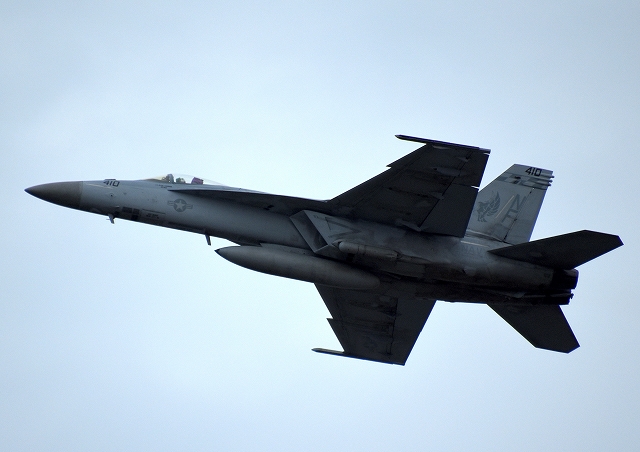 米海軍艦載機 F/A-18E スーパーホーネット 戦闘攻撃機(岩国基地)、NF、410番機が離陸 |