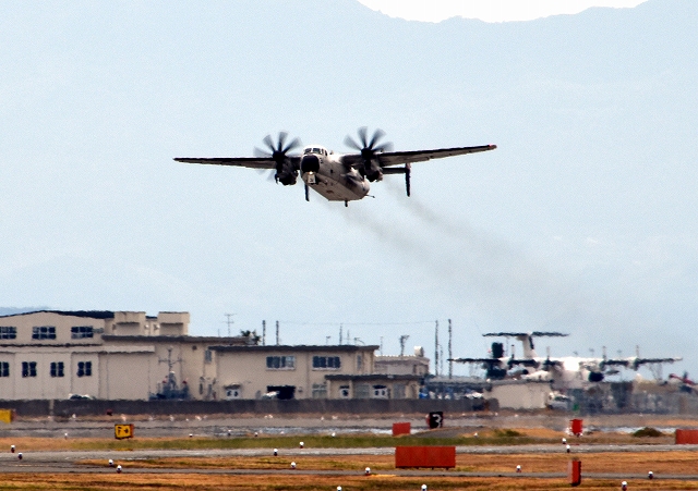 米海軍艦載機 C-2A グレイハウンド 空母連絡機(岩国基地)、31番機が離陸 |