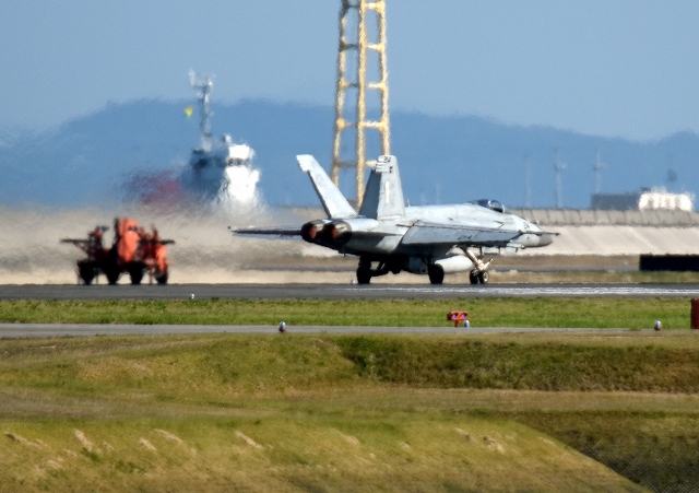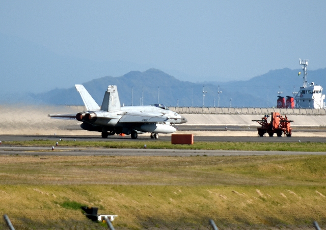 米海軍艦載機 F/A-18E スーパーホーネット 戦闘攻撃機(岩国基地)、NF、215番機が離陸 |