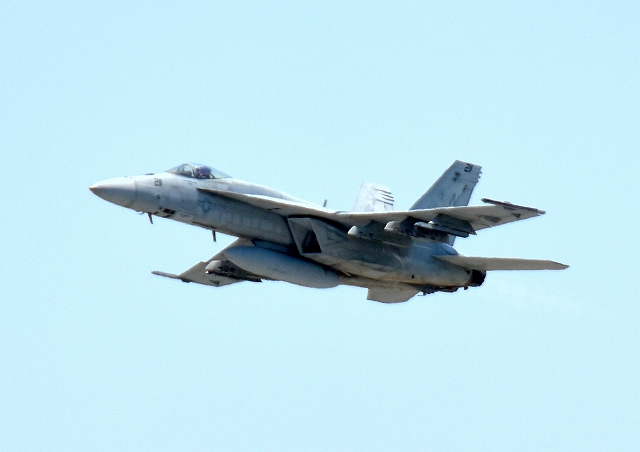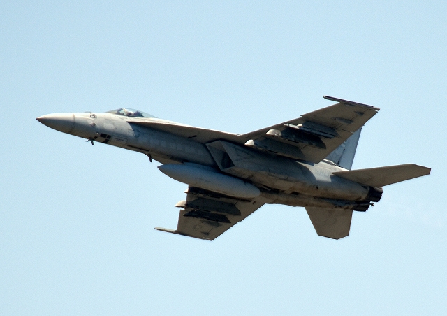 米海軍艦載機 F/A-18E スーパーホーネット 戦闘攻撃機(岩国基地)、NF、211番機が離陸 |