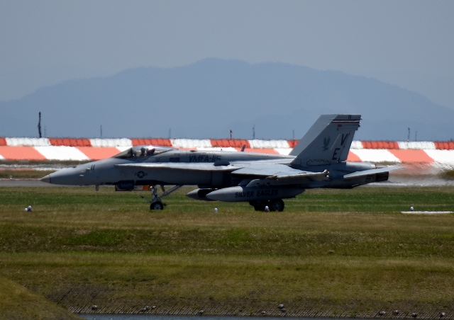 米海兵隊 F/A-18C ホーネット 戦闘攻撃機(岩国基地)、VE、11番機が離陸 |