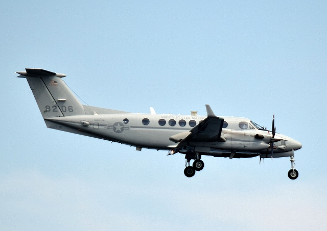 米海兵隊 UC-12W ヒューロン 軽輸送機(岩国基地)、8206番機が帰還、旋回(1周目) |