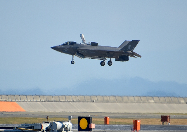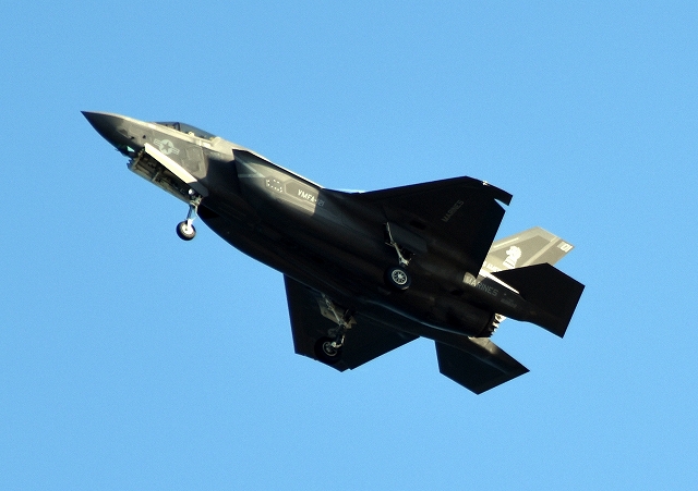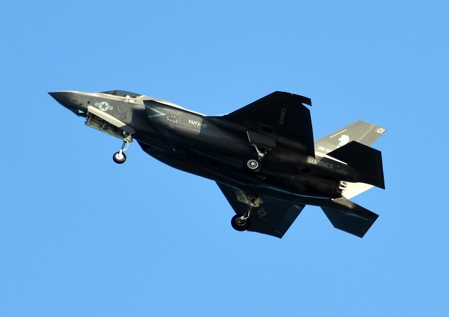 米海兵隊 F-35B ライトニングⅡ 戦闘機(岩国基地)、VK、01番機が旋回(2周目) |