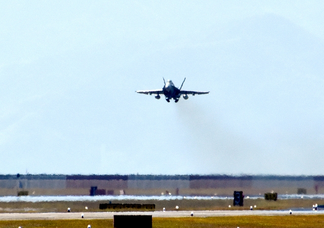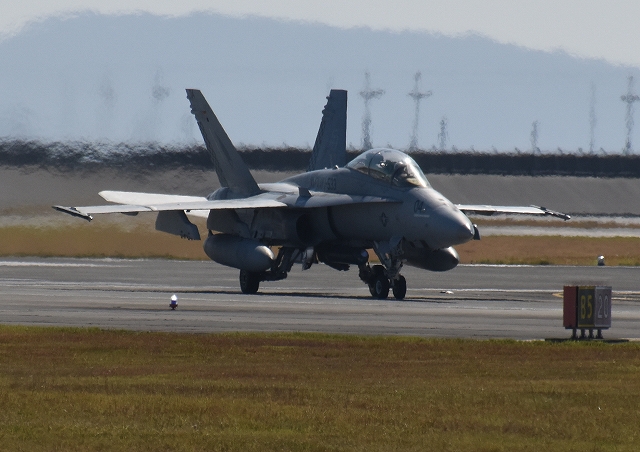 米海兵隊 F/A-18D ホ ーネット 戦闘攻撃機(岩国基地)、ED、04番機が帰還 |