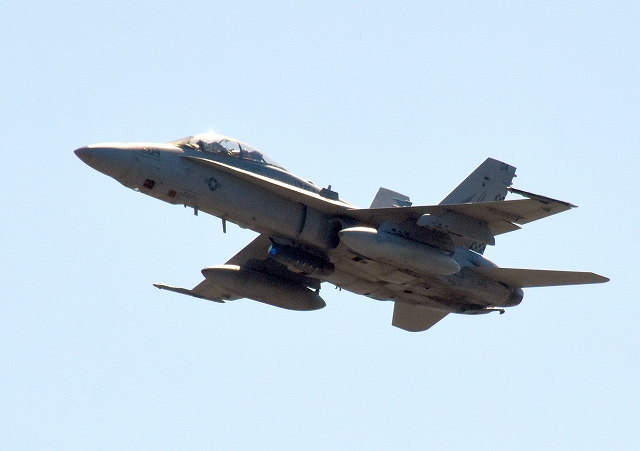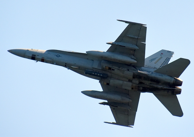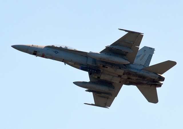米海兵隊 F/A-18D ホ ーネット 戦闘攻撃機(岩国基地)、ED、04番機が旋回 |