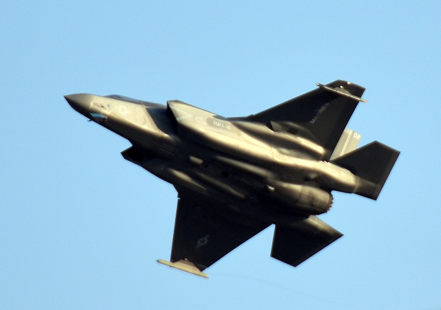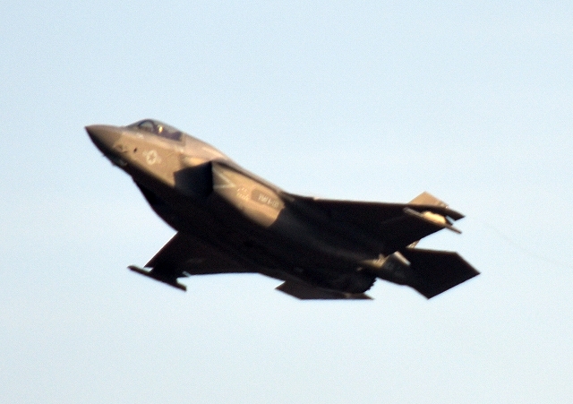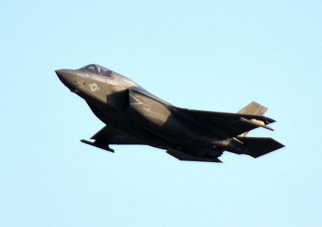 米海兵隊 F-35B ライトニングⅡ 戦闘機(岩国基地)、VK、02番機が離陸 |