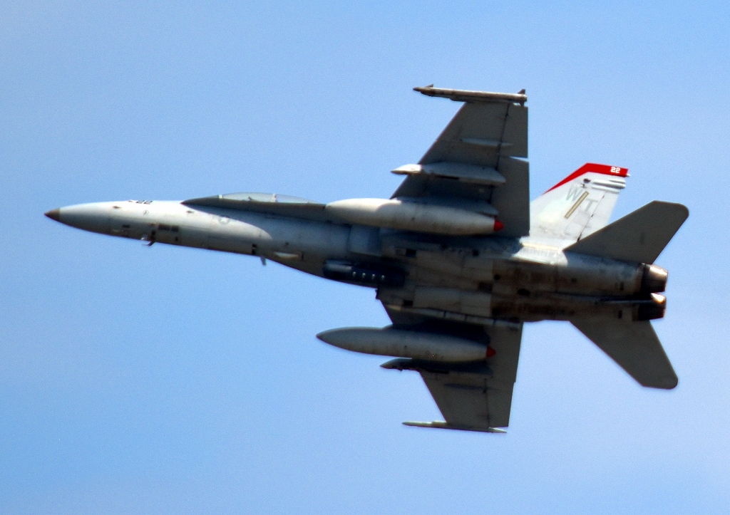 米海兵隊 F/A-18D ホーネット 戦闘攻撃機(岩国基地)、WT 22番機が離陸