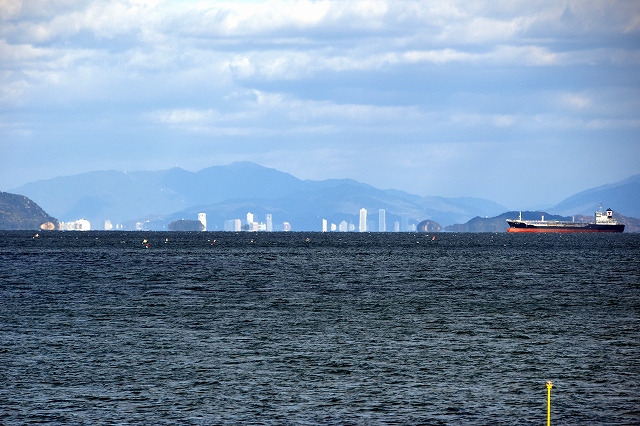 今津川沿い堤防道路には散歩の人、一人だけ。 |