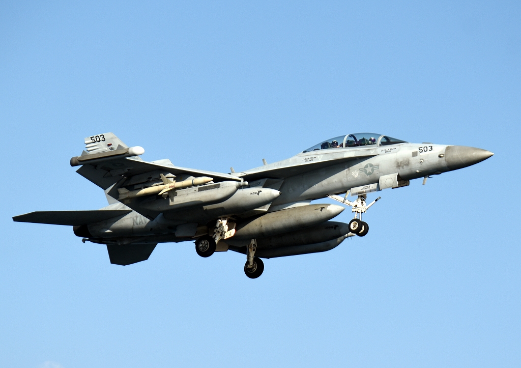 米海軍艦載機 EA-18G グラウラー 電子戦機(岩国基地)、NF、503番機が帰還