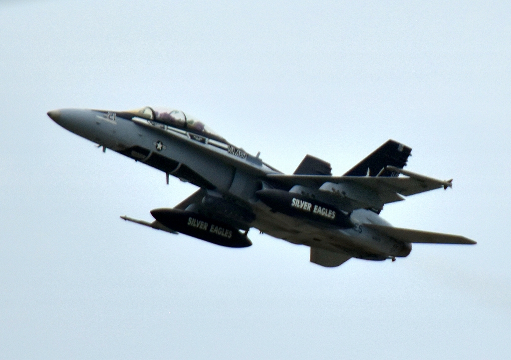米海兵隊 F/A-18D ホーネット 戦闘攻撃機(岩国基地)、VE、21番機が厚木基地に向けて離陸