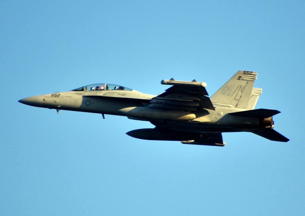 米海軍艦載機 EA-18G グラウラー 電子戦機(三沢基地)、NL、552番機が離陸
