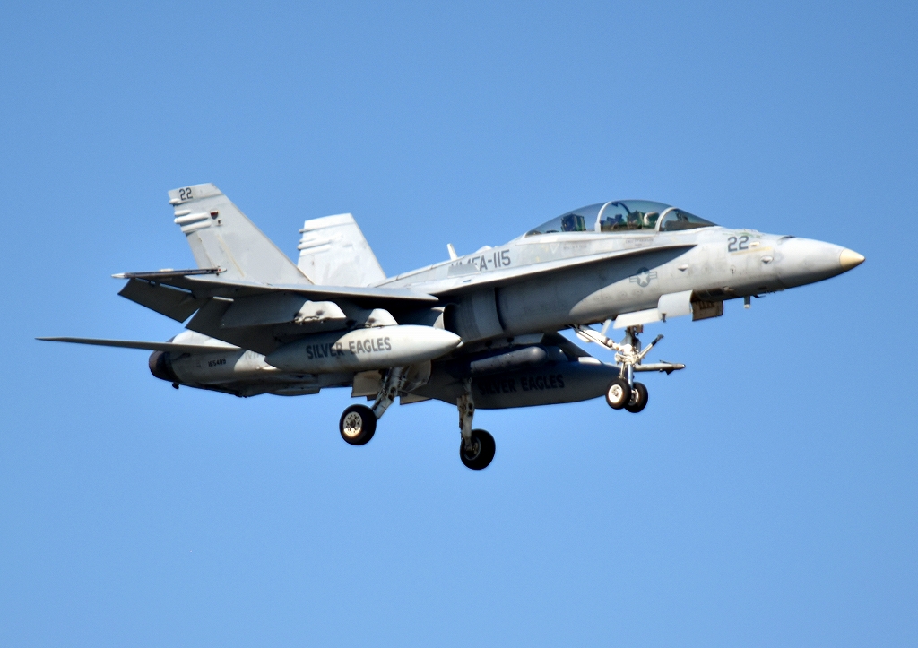 米海兵隊 F/A-18D ホーネット 戦闘攻撃機(岩国基地)、VE、22番機が帰還、着陸
