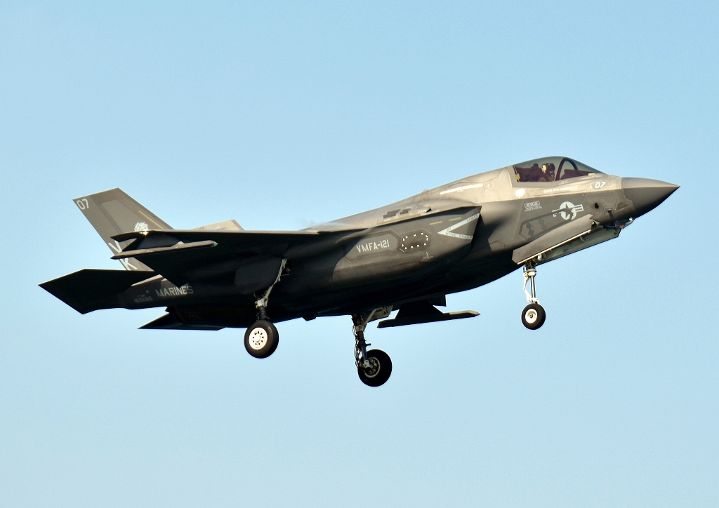 米海兵隊 F-35B ライトニングⅡ 戦闘機(岩国基地)、VK、07番機が帰還、着陸