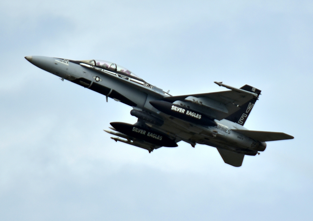 米海兵隊 F/A-18D ホーネット 戦闘攻撃機(岩国基地)、VE、21番機が離陸