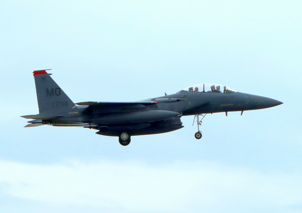 米空軍 F-15E イーグル 戦闘機(嘉手納基地)、MO、90―236番機が飛来