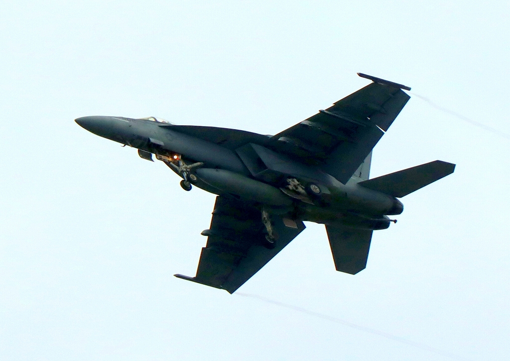 米海軍艦載機 F/A-18E スーパーホーネット 戦闘攻撃機(岩国基地)、NF、402番機が旋回
