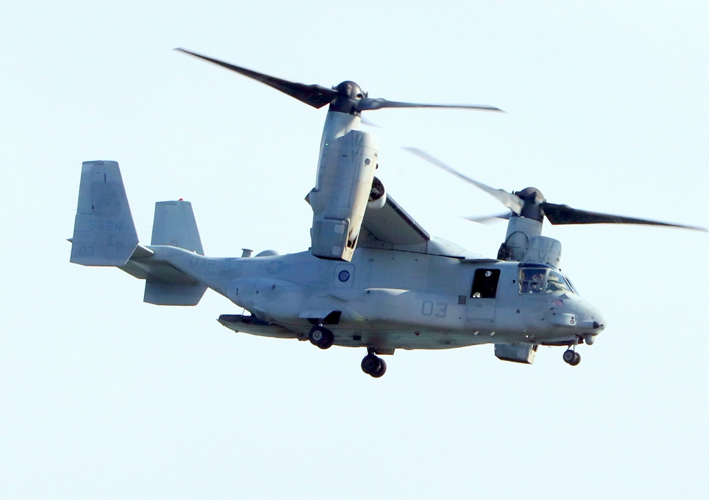 米海兵隊 MV-22B オスプレイ(普天間基地)、「虎」、ET、03番機が飛来