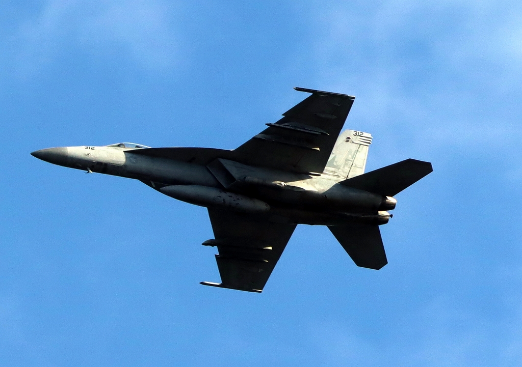 米海軍艦載機 F/A-18E スーパーホーネット 戦闘攻撃機(岩国基地)、NF、312番機が帰還、旋回