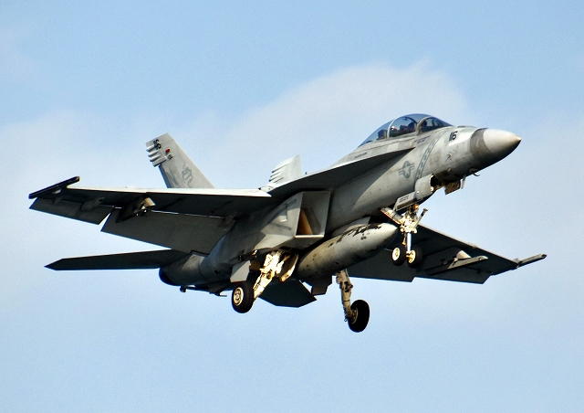 米海軍艦載機 F/A-18F スーパーホーネット 戦闘攻撃機(岩国基地)、NF、116番機が帰還 |