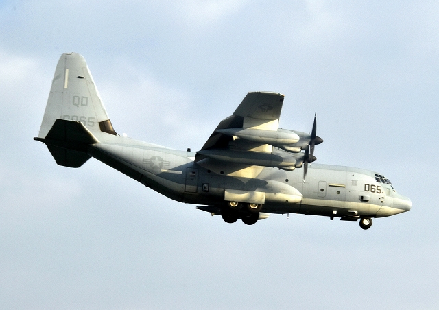 米海兵隊 KC-130J 空中給油機 スーパーハーキュリーズ(岩国基地)、8065番機が帰還 |
