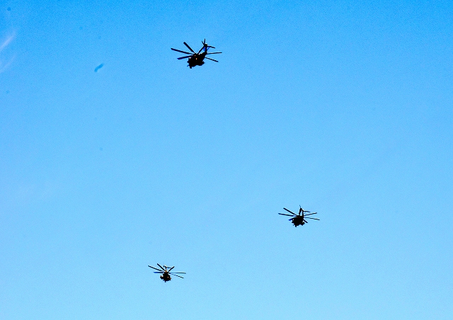米海兵隊 CH-53E 強襲大型輸送ヘリ スーパースタリオン(普天間基地)、17番機、21番機、19番機 |