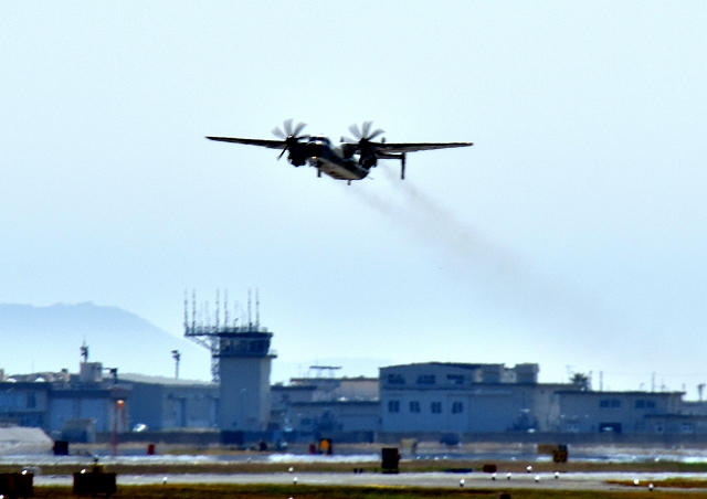 米海軍艦載機 C-2A グレイハウンド 空母連絡機(岩国基地)、35番機が離陸 |