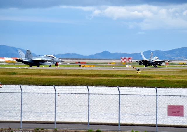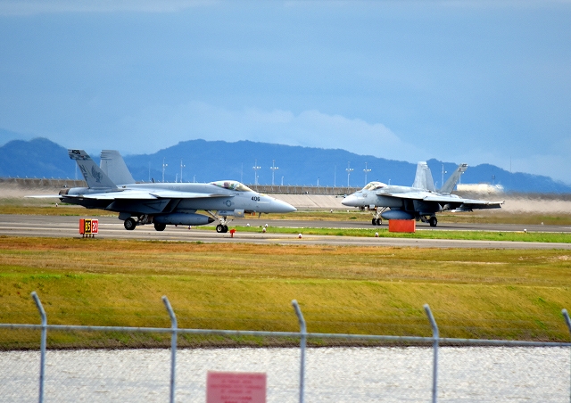 米海軍艦載機 F/A-18E スーパーホーネット 戦闘攻撃機(岩国基地)、NF、406番機、202番機 |