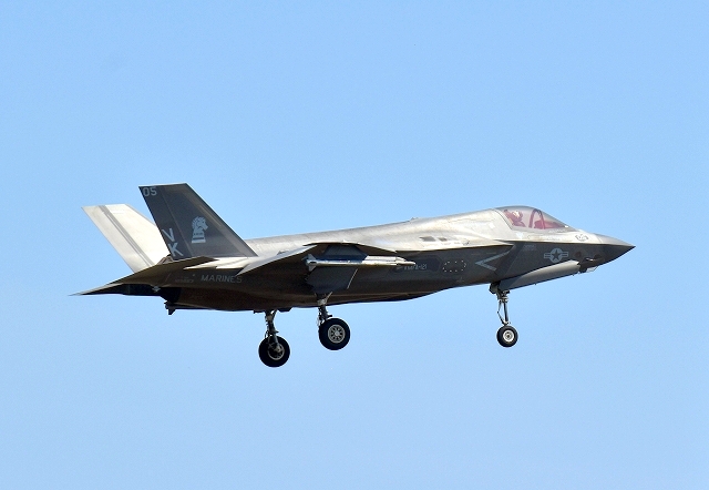 米海兵隊 F-35B ライトニングⅡ 戦闘機(岩国基地)、VK、05番機が着陸 |