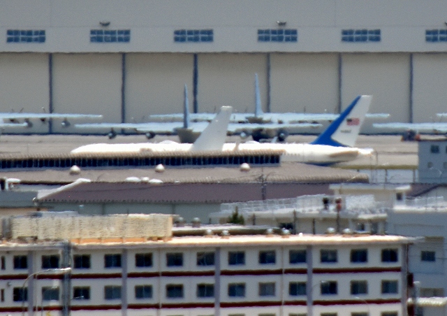 尾津の高台から 見えるは、米空軍 C-32A 要人輸送機(エアホース・ワン)、98-0002番機 |