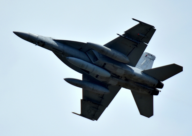 米海軍艦載機 F/A-18E スーパーホーネット 戦闘攻撃機(岩国基地)、NF、304番機が離陸 |