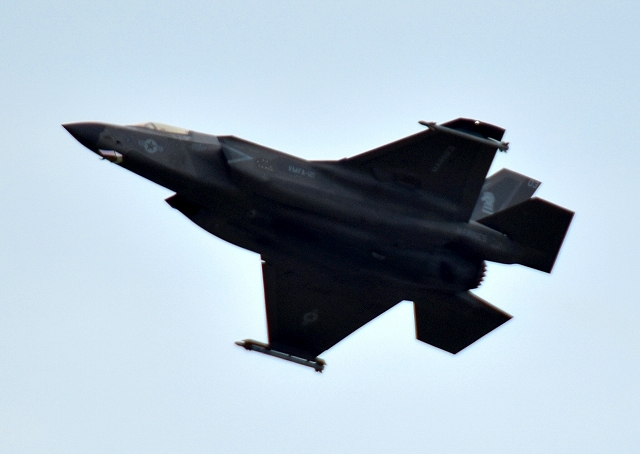 米海兵隊 F-35B ライトニングⅡ 戦闘機(岩国基地)、VK、01番機が離陸 |