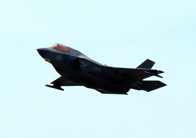 米海兵隊 F-35B ライトニングⅡ 戦闘機(岩国基地)、VK、03番機が離陸 |