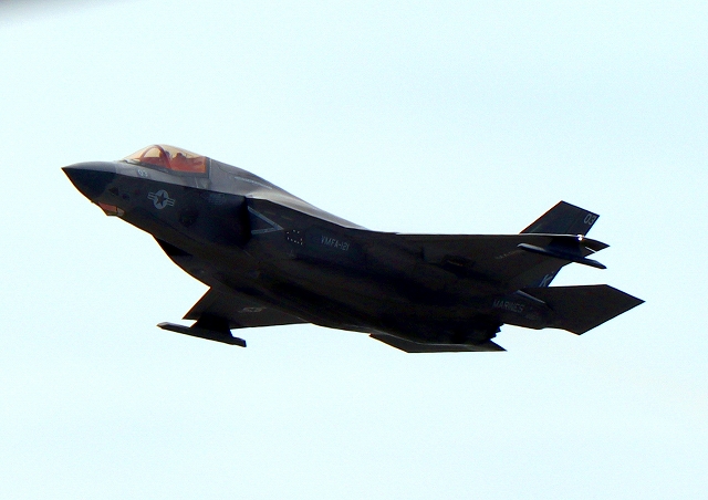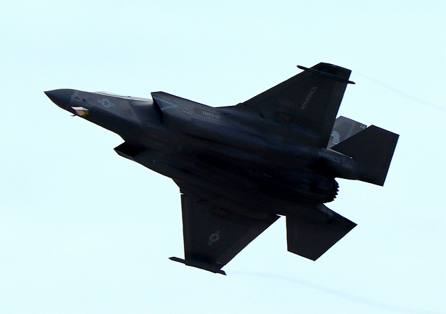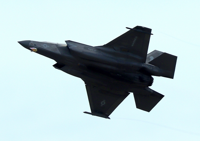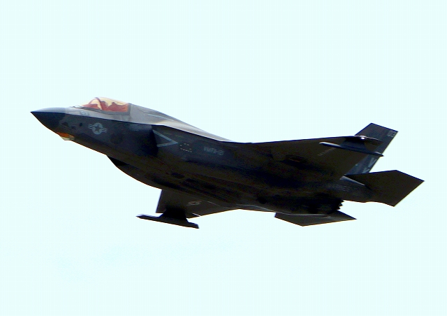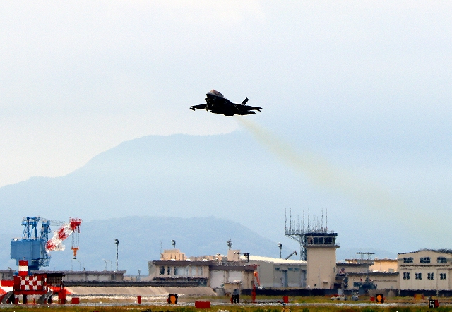 米海兵隊 F-35B ライトニングⅡ 戦闘機(岩国基地)、VK、14番機が離陸 |