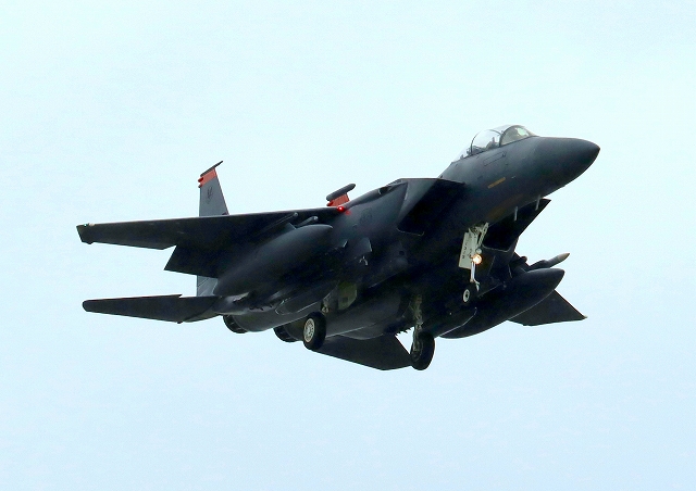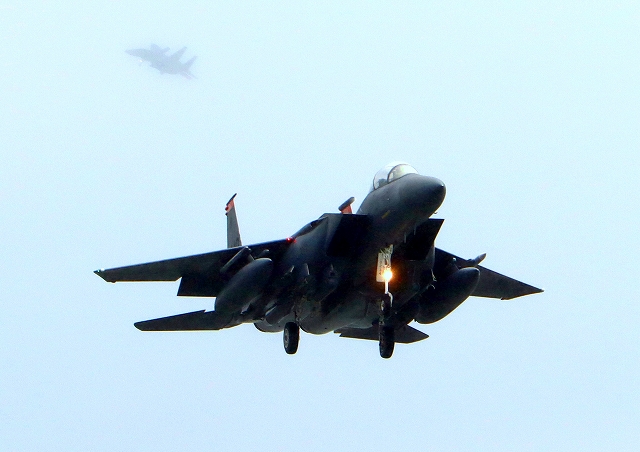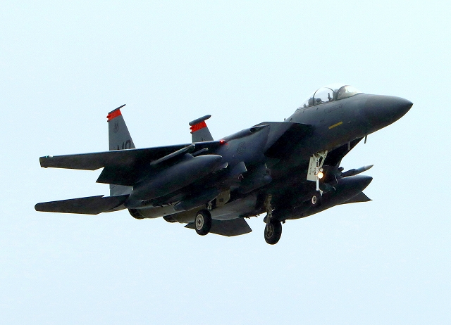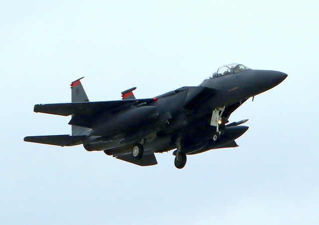 米空軍 F-15E イーグル 戦闘機(嘉手納基地)、MO、90―234番機が着陸 |
