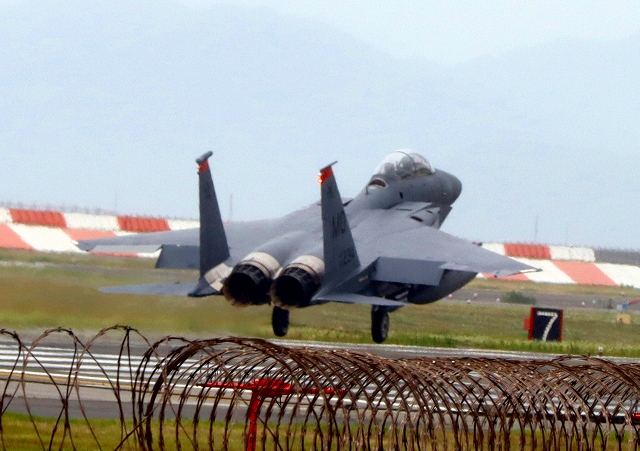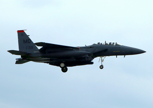 米空軍 F-15E イーグル 戦闘機(嘉手納基地)、MO、91―319番機が着陸 |