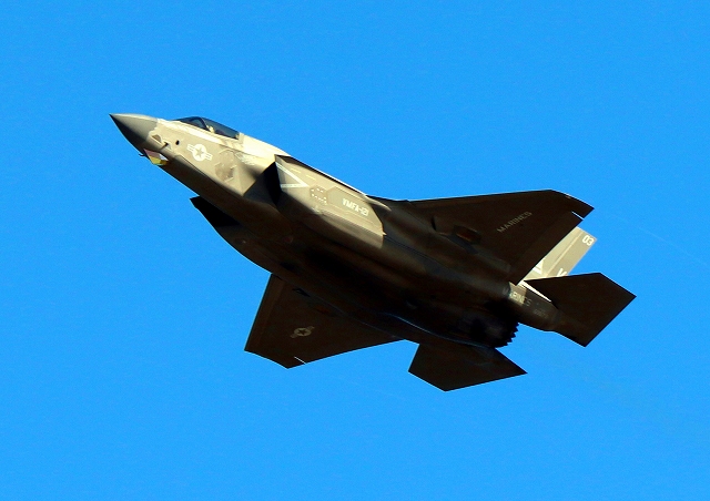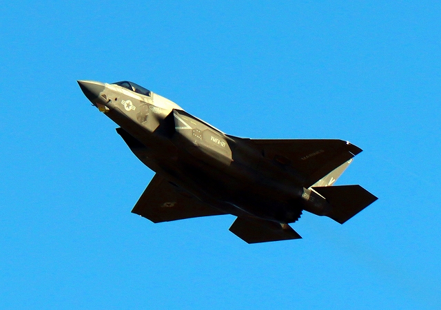 米海兵隊 F-35B ライトニングⅡ 戦闘攻撃機(岩国基地)、VK、03番機が離陸 |
