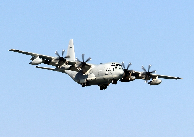 米海兵隊 KC-130J 空中給油機 スーパーハーキュリーズ(岩国基地)、7983番機が旋回 |