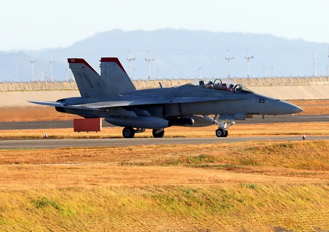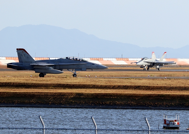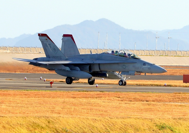 米海兵隊 F/A-18D ホーネット 戦闘攻撃機(岩国基地)、WT、21番機、23番機が帰還 |