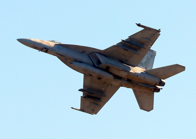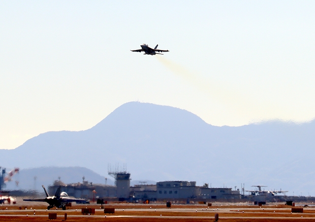 米海軍艦載機 F/A-18E スーパーホーネット 戦闘攻撃機(岩国基地)、NF、306番機が離陸 |