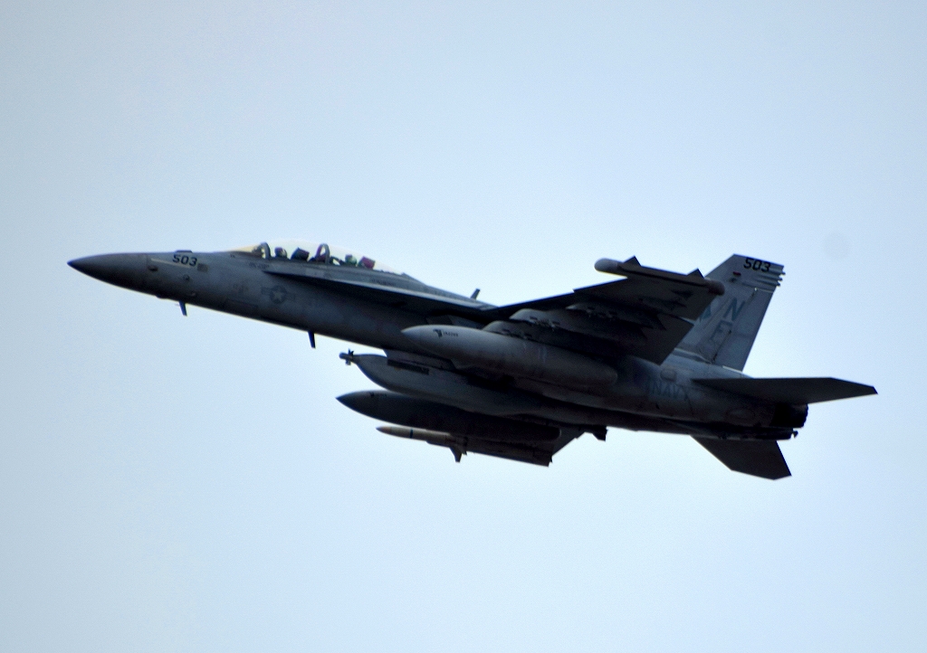 米海軍艦載機 EA-18G グラウラー 電子戦機(岩国基地)、NF、503番機が離陸